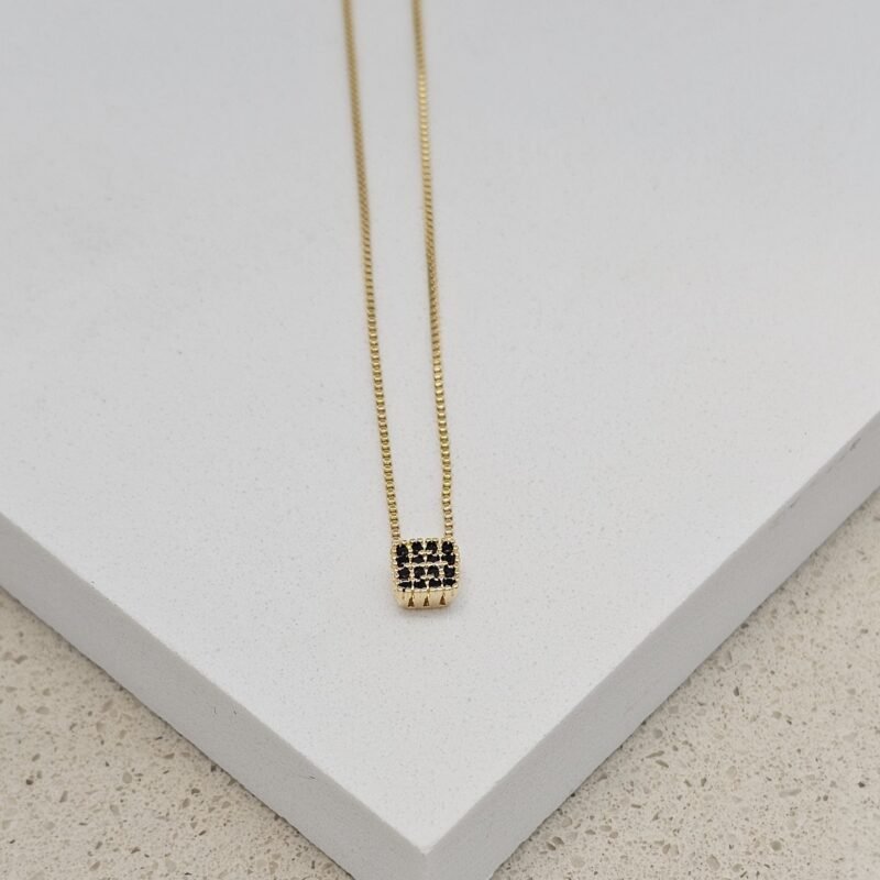 CADENA VENECIANA 45CM + CUADRO CIRCON NEGRO